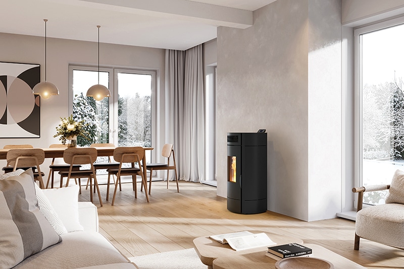 With its sober color and round shape, the Lodi 8 pellet stove blends harmoniously with your interior décor. It also boasts outstanding performance and features.