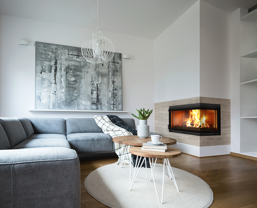 La chimenea de esquina permite ver el fuego desde varios ángulos, izquierdo o derecho, según la configuración de su hogar.