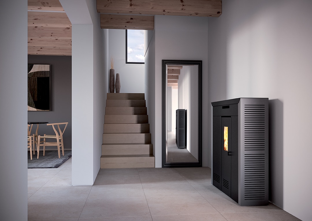 La estufa de pellets Daglan ocupa un espacio mínimo y ofrece el máximo confort gracias a su alto rendimiento, su gran autonomía y sus opciones de programación.