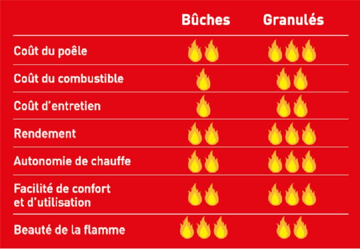 - Prix compétitif. Les poêles à bûches utilisent un combustible moins onéreux, car plus répandu et disponible que les granulés. En termes de coût à l’utilisation, ils se placent donc comme les plus compétitifs du marché.Rendement. Répondant aux exigences du label « Flamme Verte », les poêles à bûches garantissent un rendement énergétique de qualité pouvant atteindre jusqu’à 80 %. À noter que ces appareils diffusent la chaleur rapidement et ne nécessitent pas d’électricité pour fonctionner.