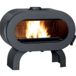 Le poêle à bois Fifty Arche vous transporte dans le style des années 50 et dans l'efficacité énergétique du futur.