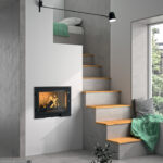 Côté technique, un foyer raccordable à post-combustion. Côté design, un style épuré qui invite à la contemplation des flammes.