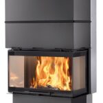 La porte en façade et les côtés vitrés offrent une vue à 180° sur les flammes. La porte coulisse vers le haut pour recharger facilement le foyer. Pour l’entretien, les vitres latérales peuvent s’ouvrir après déblocage de la sécurité. Habillé de pierres réfractaires, le foyer Bayard 80 délivre un rendement élevé et de hautes performances environnementales.