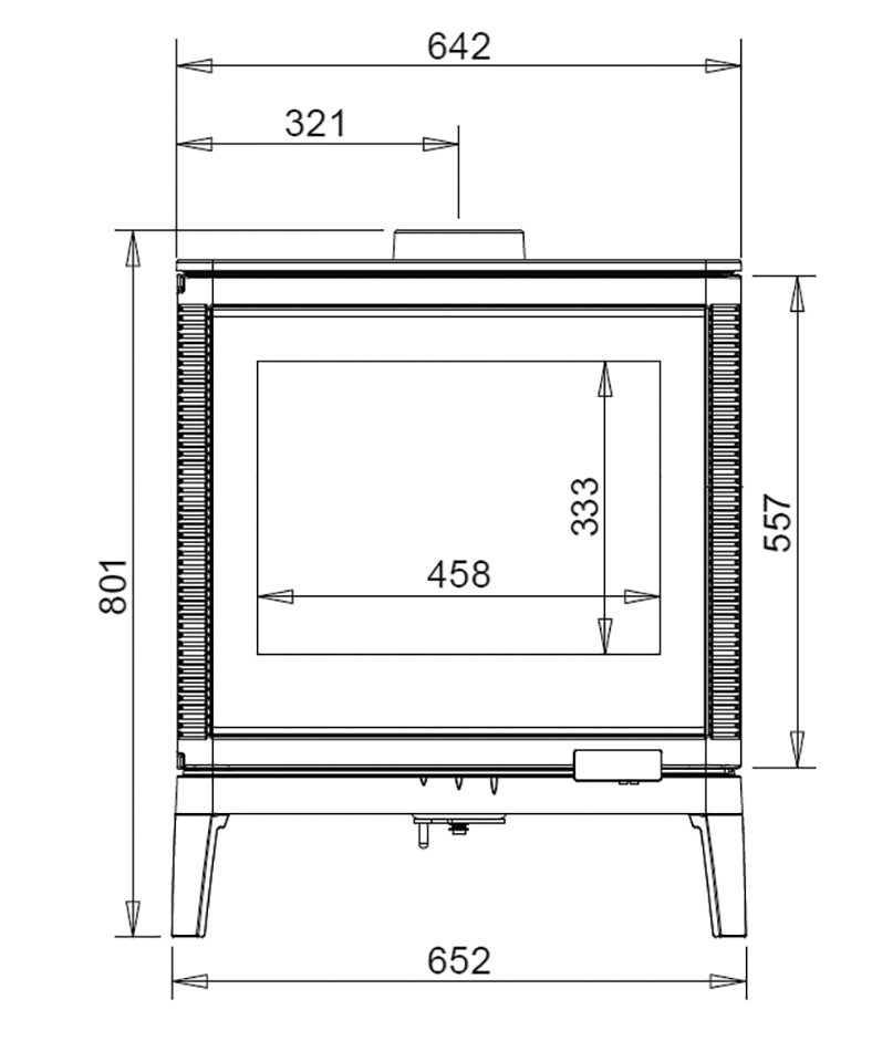 Le système vitre propre permet de ralentir l’encrassement du vitrage. Une arrivée d’air sur le haut de la vitre crée un voile de protection. L’ air préchauffé est propulsé le long du vitrage. Il déclenche la combustion des gaz et des matières volatiles protégeant ainsi la vitre contre la fumée et le dépôt de suie.