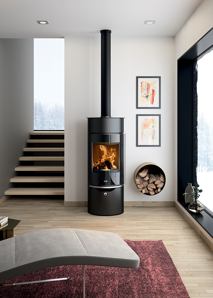 Vous ne resterez pas longtemps hermétique au charme de ce poêle à bois étanche. Derrière sa silhouette fine, Eguzki dissimule à son sommet un système astucieux d’accumulation de chaleur composé de briques réfractaires.