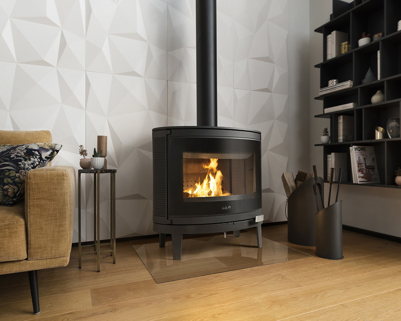 D’inspiration japonaise, le design du poêle à bois en fonte Ikari repose sur l’harmonie de sa forme elliptique et de sa grande porte vitrée. D’un point de vue technique, le système de post-combustion génère de hautes performances énergétiques et environnementales. Design : B. Dequet