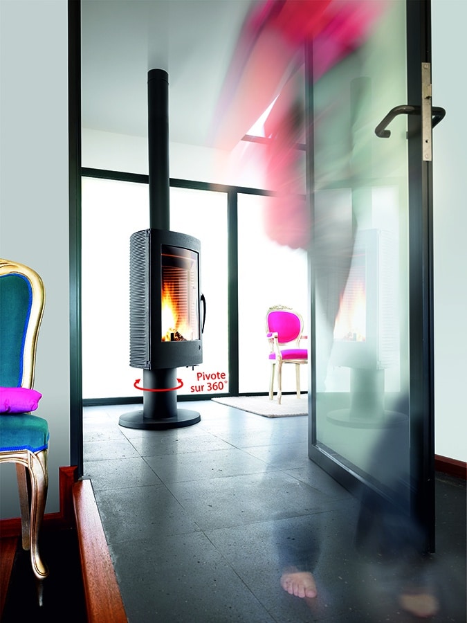 Posé sur un plateau avec roulement à bille et équipé d’une buse rotative, ce poêle pivote à 360°. Vous pouvez orienter le spectacle des flammes dans l’angle de votre choix. Idéal pour une installation centrale dans une pièce.