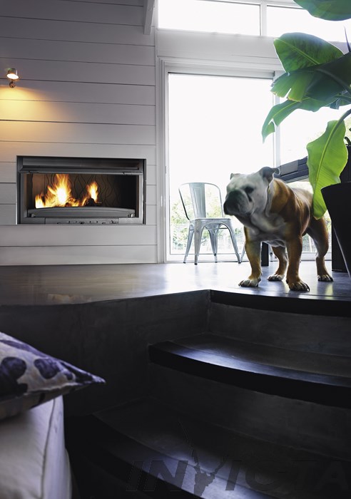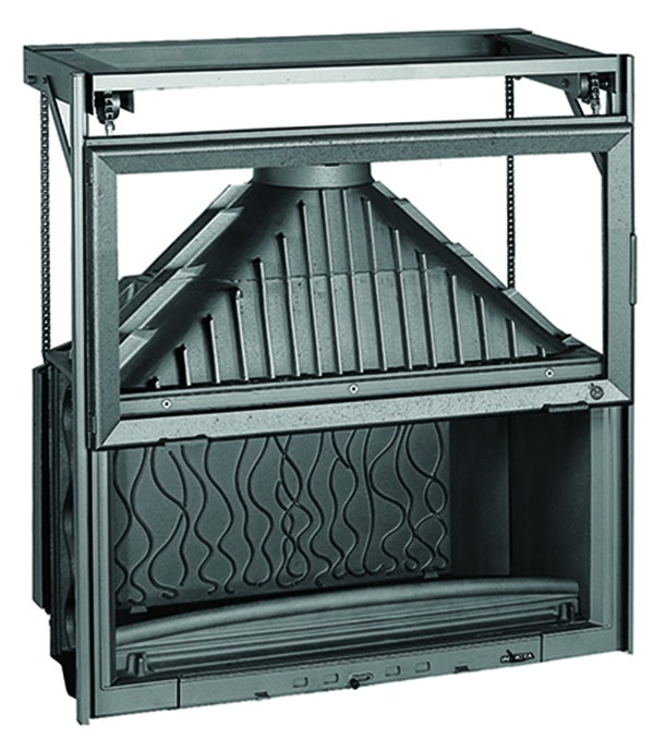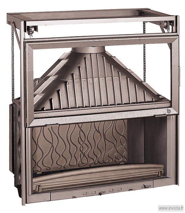 A porta abre-se e fecha-se lateralmente para se obterem os melhores desempenhos energéticos da sua casa fechada. Desliza, igualmente, em altura, através de um sistema de contrapeso. Esta porta removível permite-lhe assim disfrutar, ocasionalmente, de uma lareira aberta.